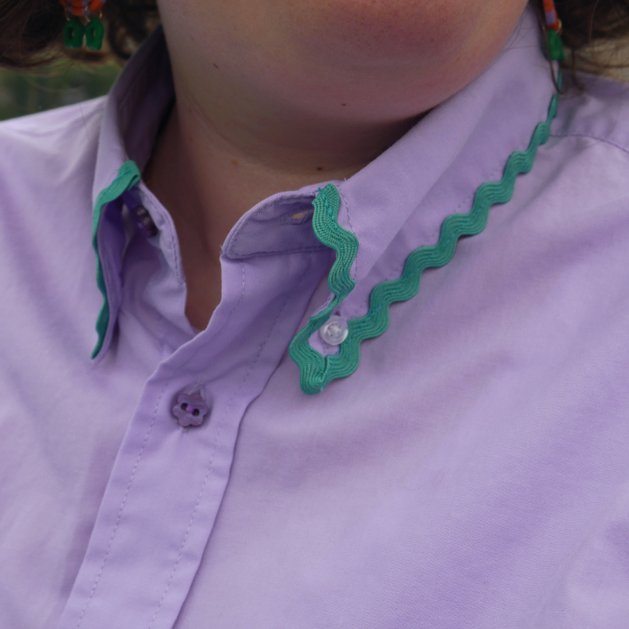 Avec ses manches courtes et sa coupe droite mais large, elle est super agréable à porter. Le col et les manches sont mis en valeur par un ruban coloré et des petits boutons uniques.
